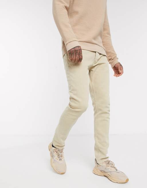 Topman cotton blend stretch skinny jeans in stone wash CREAM ASOS