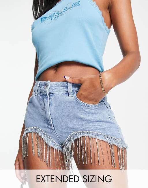 ASYOU waistband denim short co ord with diamante fringe ASOS