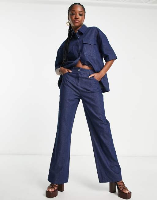 Denim clearance pants set, 2Pc Set Women s Fashion Casual Denim Suit Summer Wide Leg Pants clearance