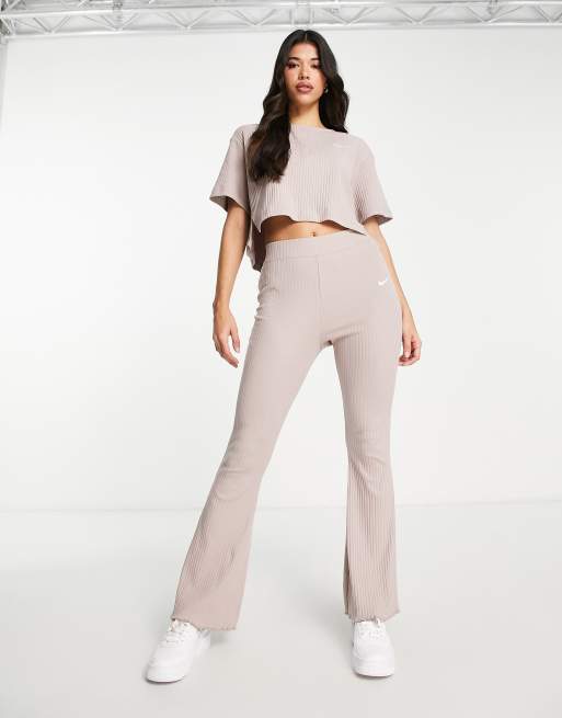 Pink Vanilla Stone Ribbed Jersey Flared Trousers New Look