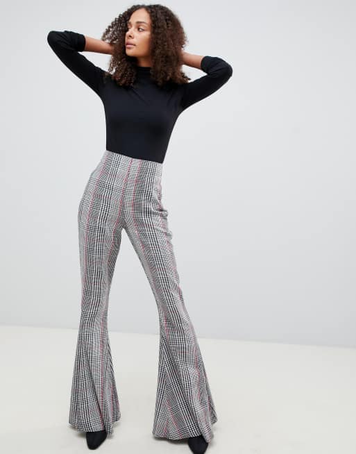 Plaid kick flare clearance pants, Steve Madden Waverly Plaid Print Mid Rise Kick Flare Trouser Pants clearance