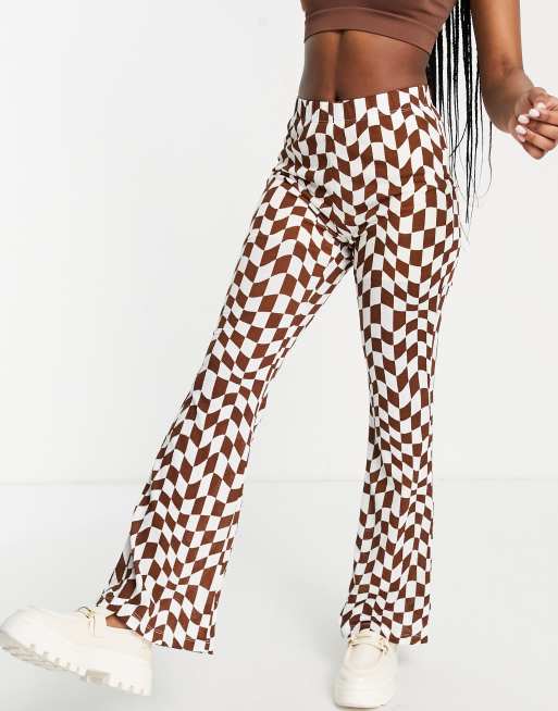 Only exclusive flare trousers in chocolate checkerboard