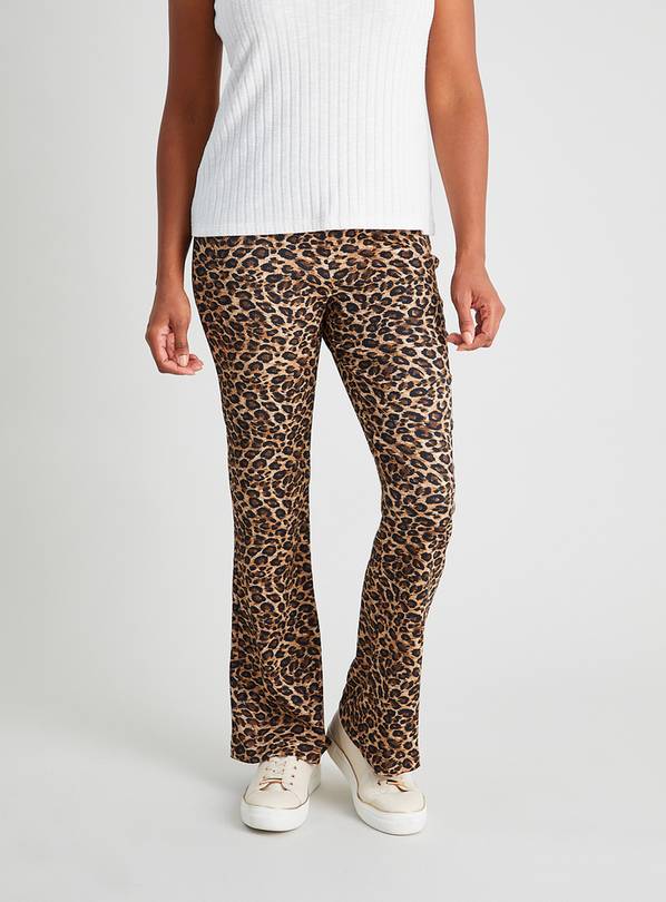 Leopard print kick clearance flare trousers, Buy Brown Mark Making Print Kick Flare Leggings 24 Leggings Tu clearance