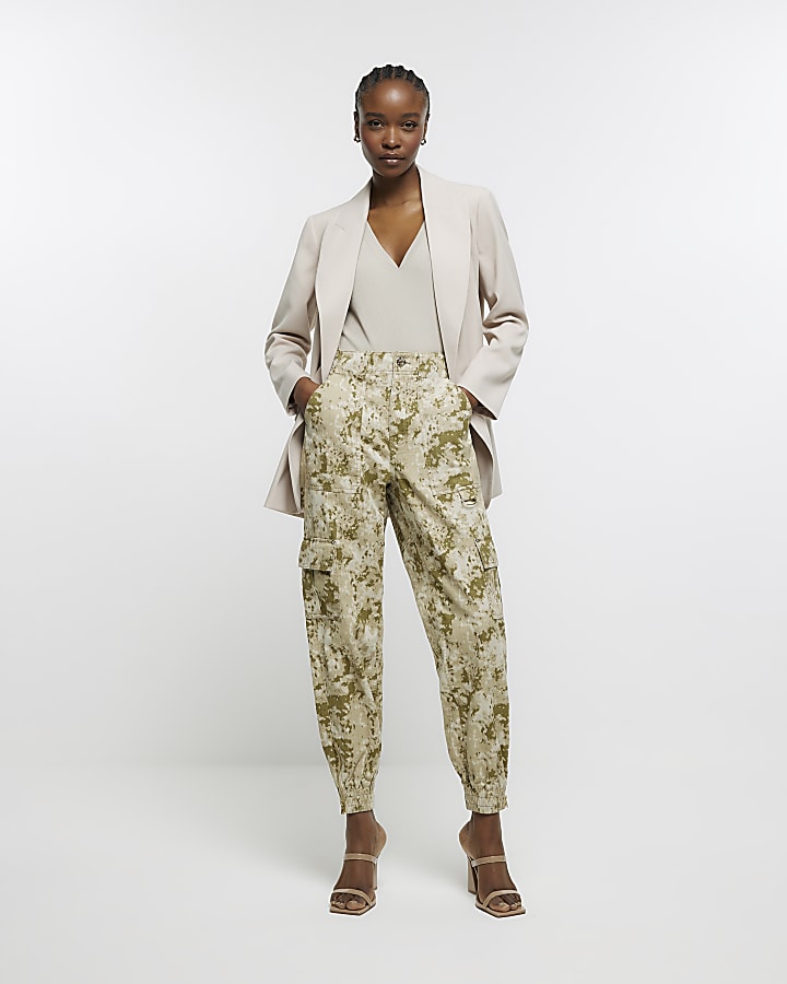 Army trousers river clearance island, Khaki camo print cargo trousers River Island clearance
