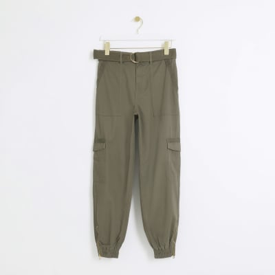 River Island cuffed cargo trouser with zip detail in khaki ASOS