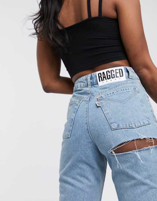 The Ragged Priest mom jeans with bum rip in light wash denim
