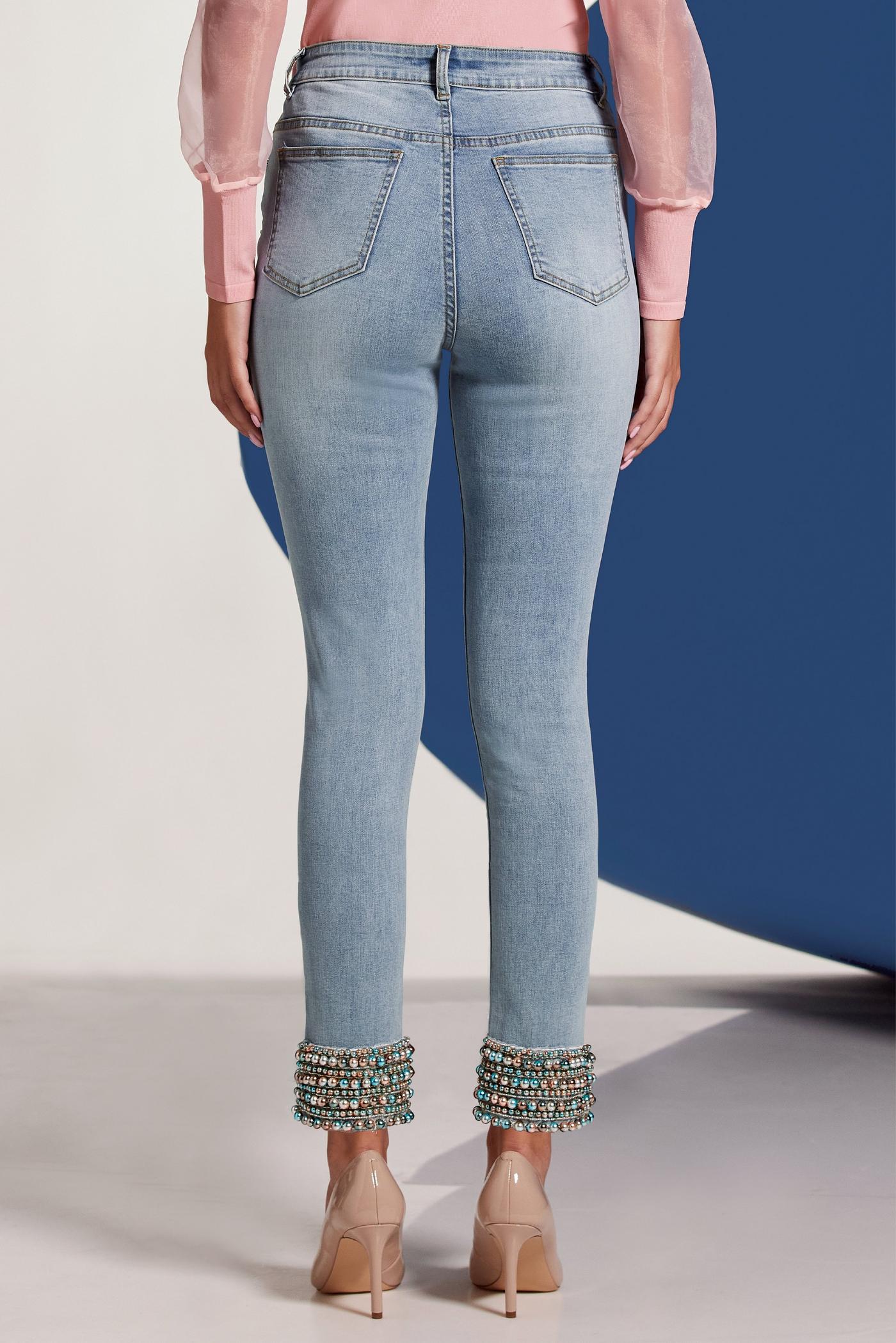 ALLEN B BLUE DENIM JEANS PANTS CORAL PEARL SEQUIN DETAIL WAIST CUFFS CROP SIZE S