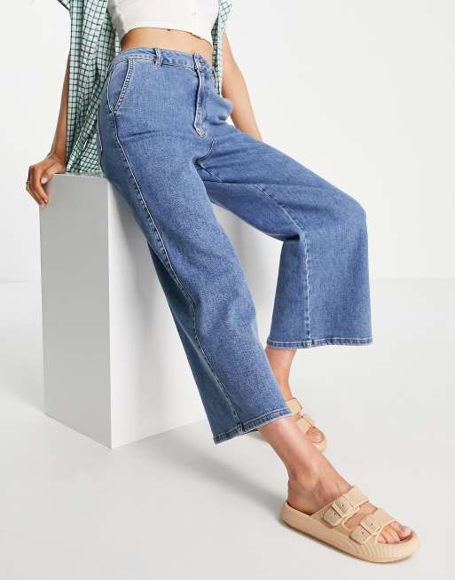 Selected Femme Randi cotton blend wide leg cropped jeans in mid