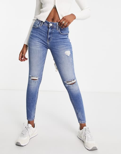 River Island Amelie distressed skinny jeans in mid auth blue ASOS