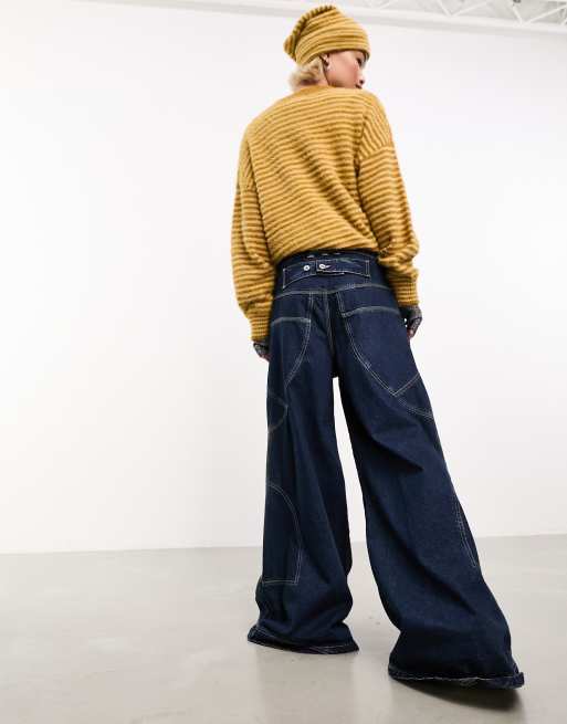 Collusion x018 Unisex Y2K wide leg skater jeans with branding in