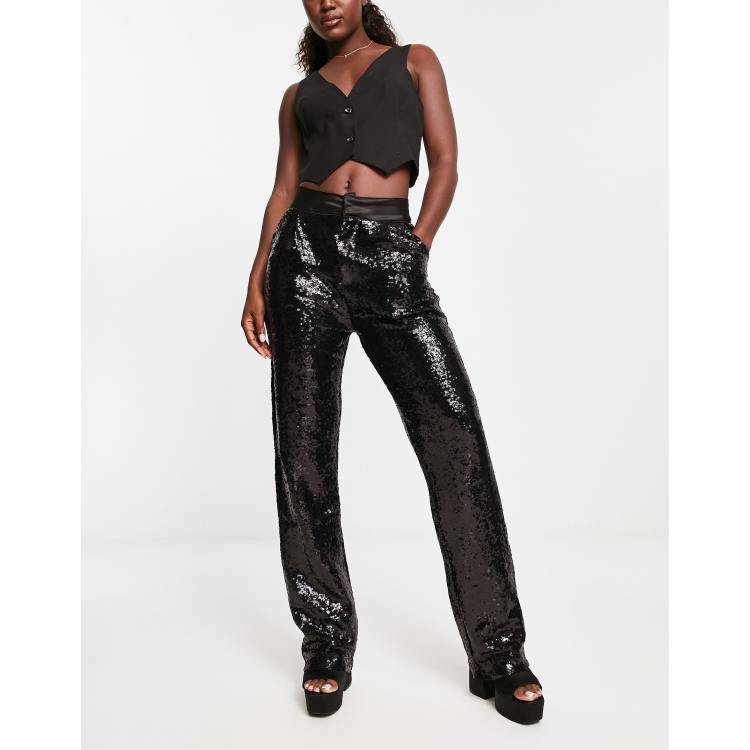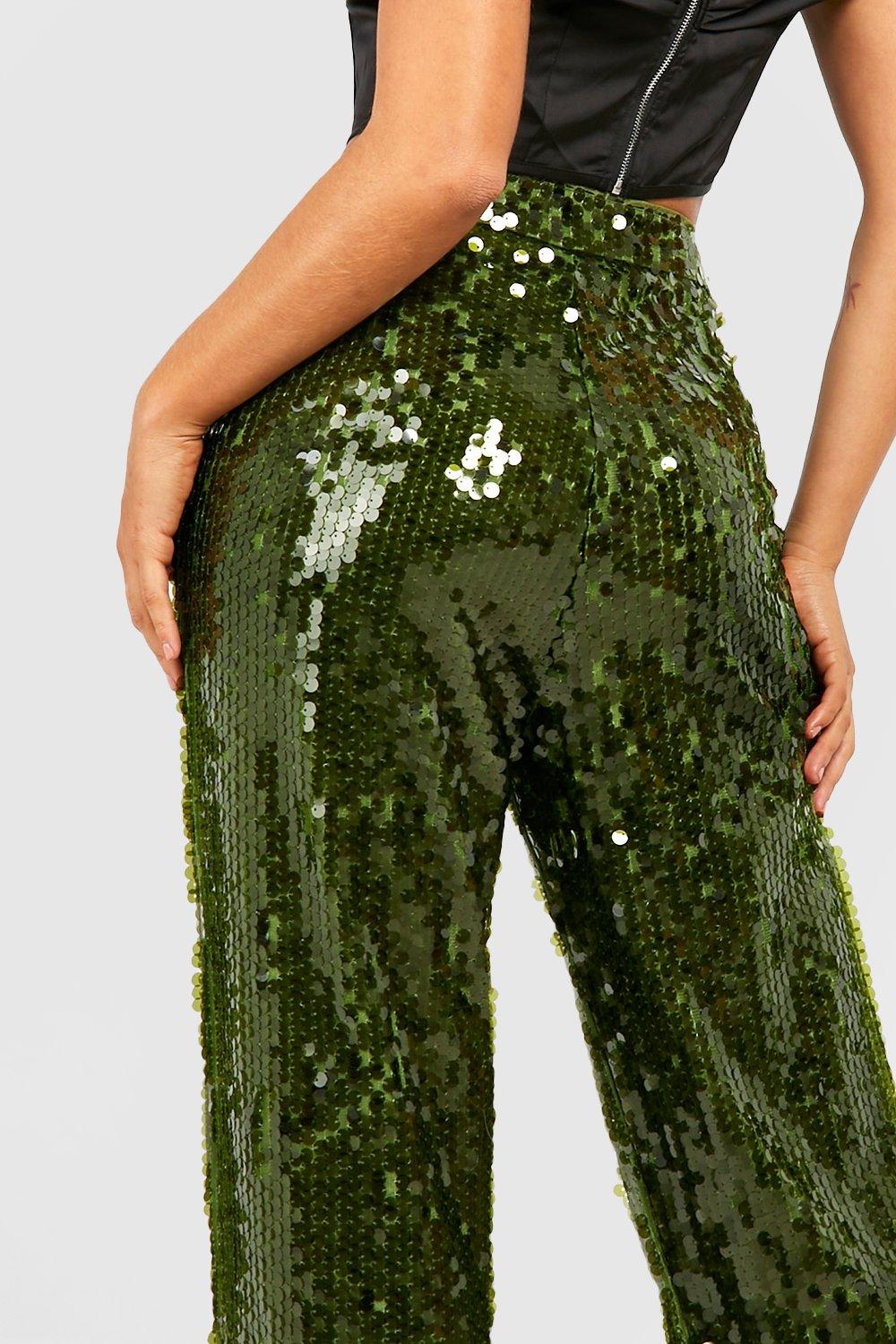 Sequin high rise clearance pants, Sequin High Waisted Wide Leg Trousers boohoo clearance