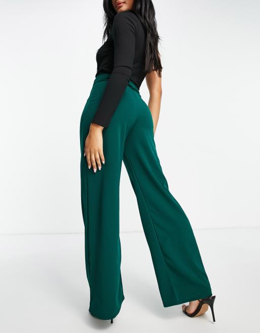 Style Cheat high waisted tailored trouser with buckle in emerald
