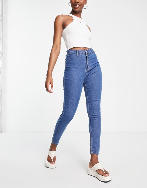 DTT Chloe high waisted disco stretch skinny jeans in mid wash blue