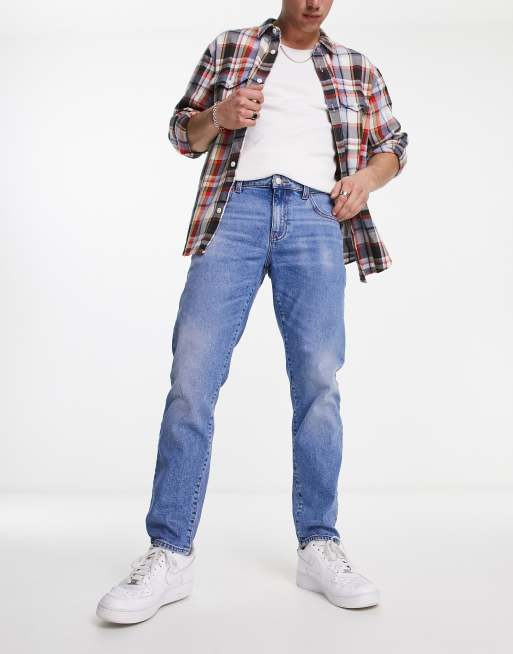 Jeans clearance around me, ASOS DESIGN tapered jeans in light wash blue ASOS clearance