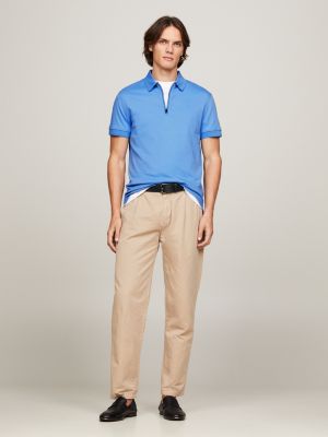 Light blue polo clearance and khaki pants, Zip Placket Slim Fit Interlock Polo Blue Tommy Hilfiger clearance