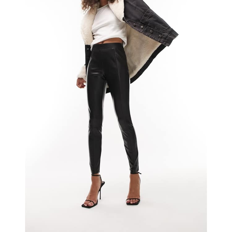 Topshop percy faux clearance leather skinny pants, Topshop Tall faux leather zip front skinny flare trouser with split hem in black clearance
