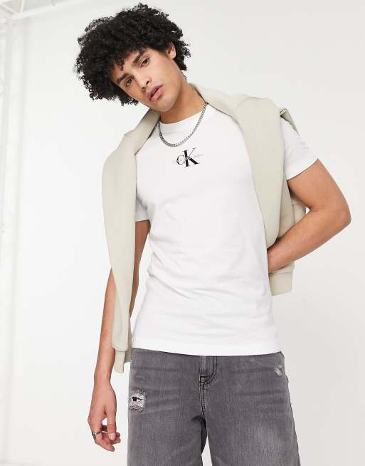 Calvin Klein Jeans icon monogram logo slim fit t shirt in white