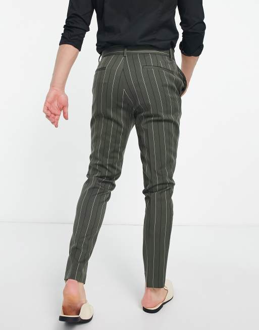 Skinny ankle grazer clearance trousers, ASOS DESIGN smart skinny ankle grazer trouser in green stripe ASOS clearance