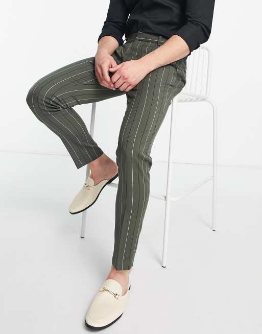 ASOS DESIGN smart skinny ankle grazer trouser in green stripe ASOS