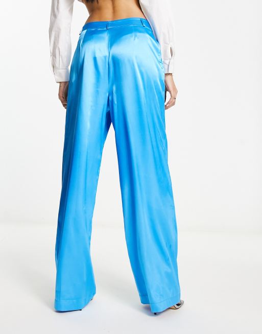 Miss Selfridge satin trouser with drop waistband co ord in blue