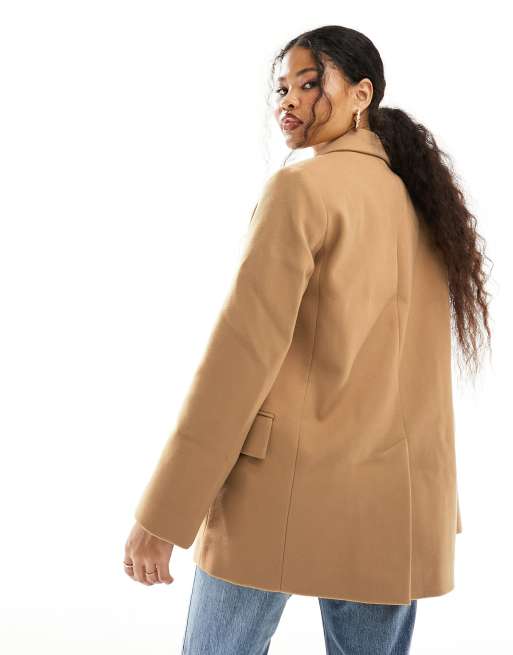 ASOS DESIGN Petite double breasted blazer coat in camel ASOS
