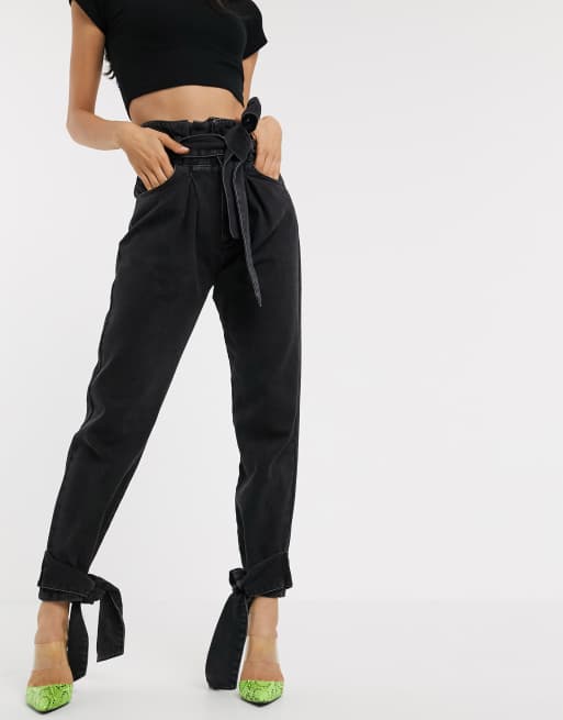 New Look Tall paperbag waist jeans in black ASOS Tall jeans