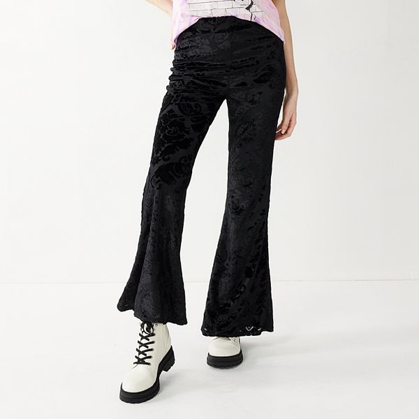 Juniors SO Velvet Paisley Print Pull On Flare Pants
