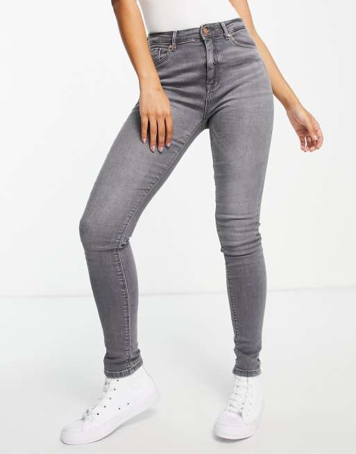 Only paola life high waist skinny jeans in grey denim