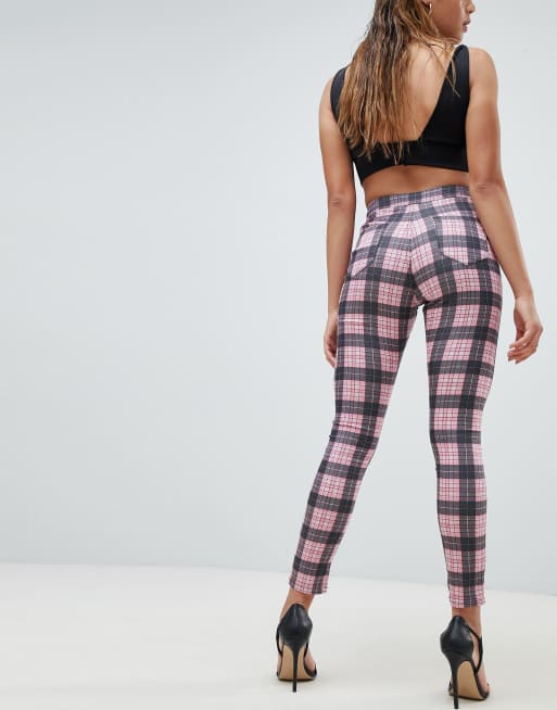ASOS DESIGN Petite Rivington high waisted denim jeggings in tartan