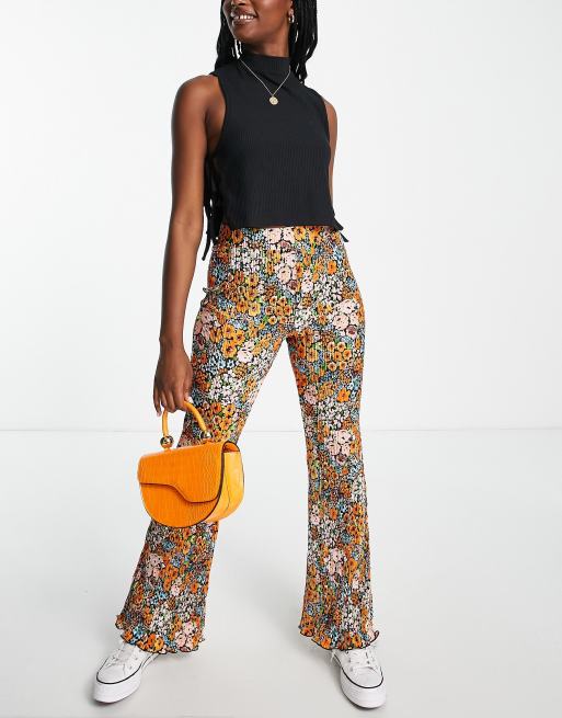 Monki Ocean plisse flare trousers in rainbow floral ASOS