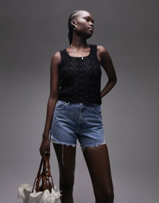 Topshop ripped a line Mom short in mid blue ASOS