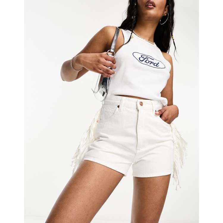 Wrangler clearance mom shorts, Wrangler fringe denim shorts in white clearance