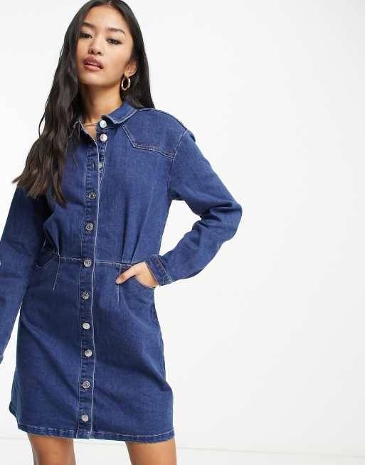 ONLY Denim Buttoned Collar Maxi Shirt Dress Size M