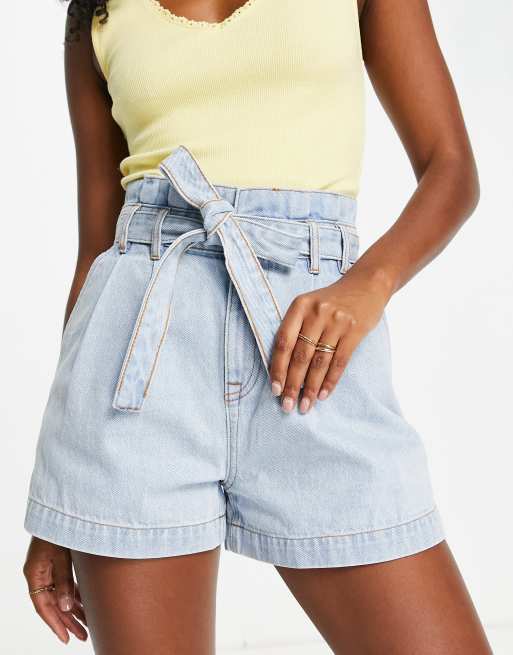 Tie Belt High Waist Pleat Denim Shorts Asymmetric Waistband Temu