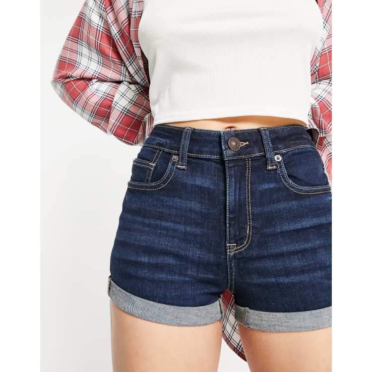 American Eagle high rise denim shorts in dark blue ASOS