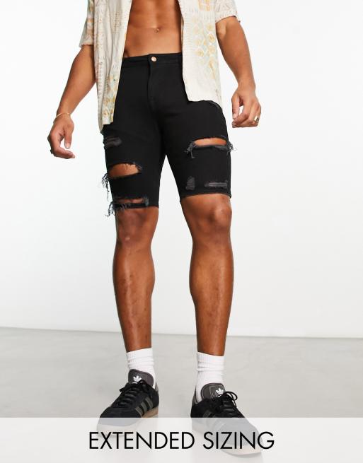 ASOS DESIGN skinny regular length shorts in black with heavy rip