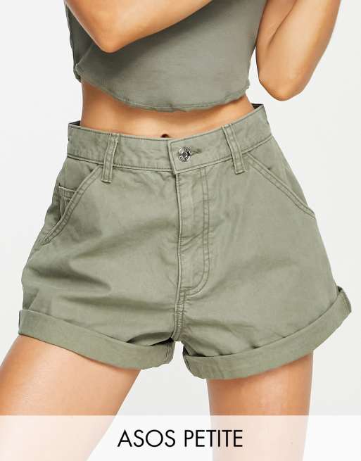 Khaki high waisted clearance shorts, ASOS DESIGN Petite slouchy mom short in washed khaki clearance