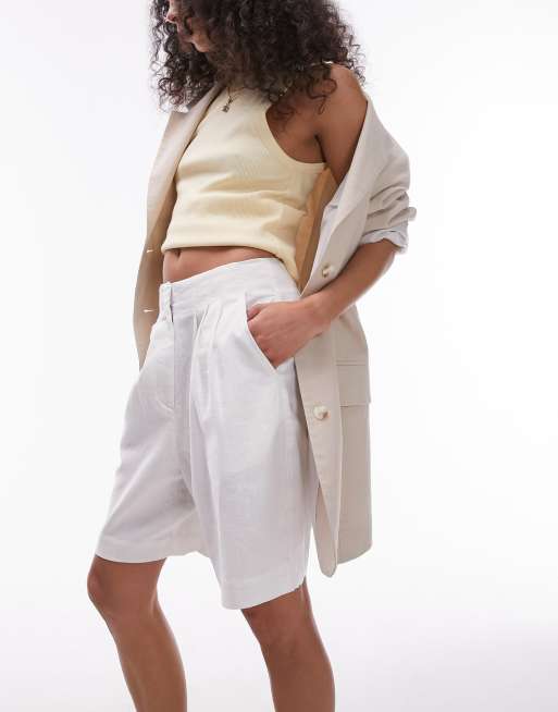 Topshop clearance linen shorts, Mango tie waist tailored linen shorts in ecru clearance