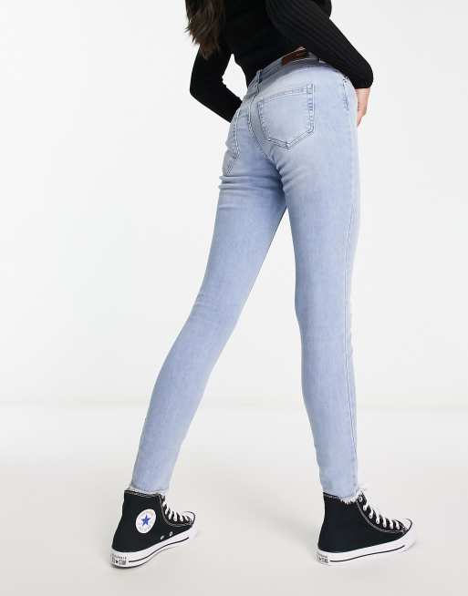 Only Blush skinny jeans with frayed hem in light blue