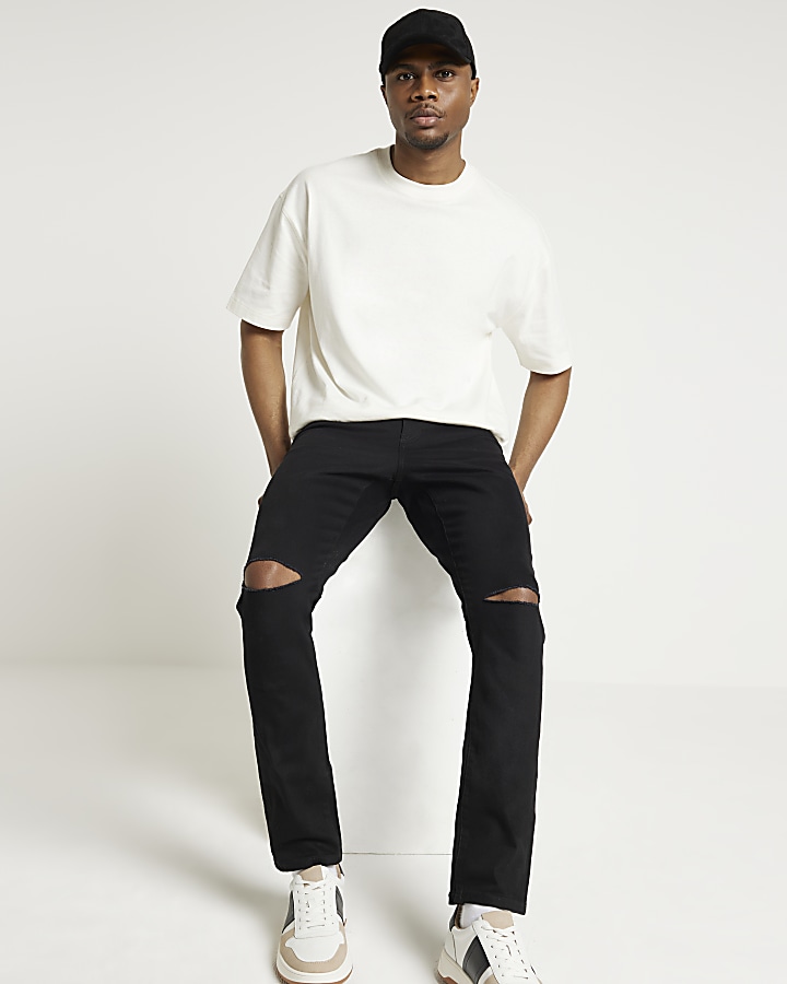 Black Ripped Jeans with White Short Sleeve Shirt Relaxed Summer