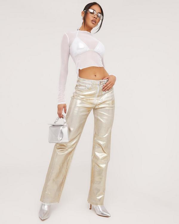Women s Gold Metallic Coated Jeans Boohoo UK