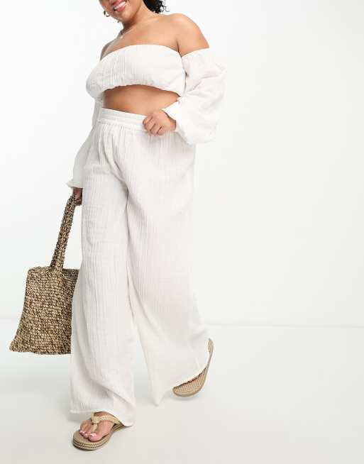 ASOS DESIGN Curve wide leg beach pants in natural gauze part of a set