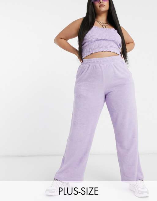 Plus size purple clearance pants, COLLUSION Plus exclusive textured towelling wide leg trousers in clearance