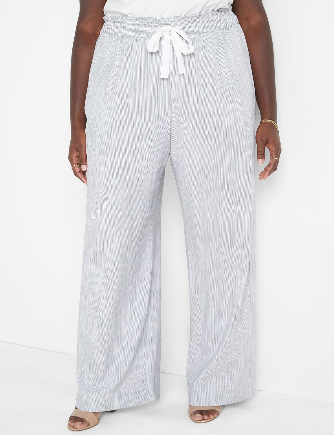 LANE BRYANT PLUS SIZE STRIPED LINEN BLEND BELTED WIDE LEG PANTS SZ 26