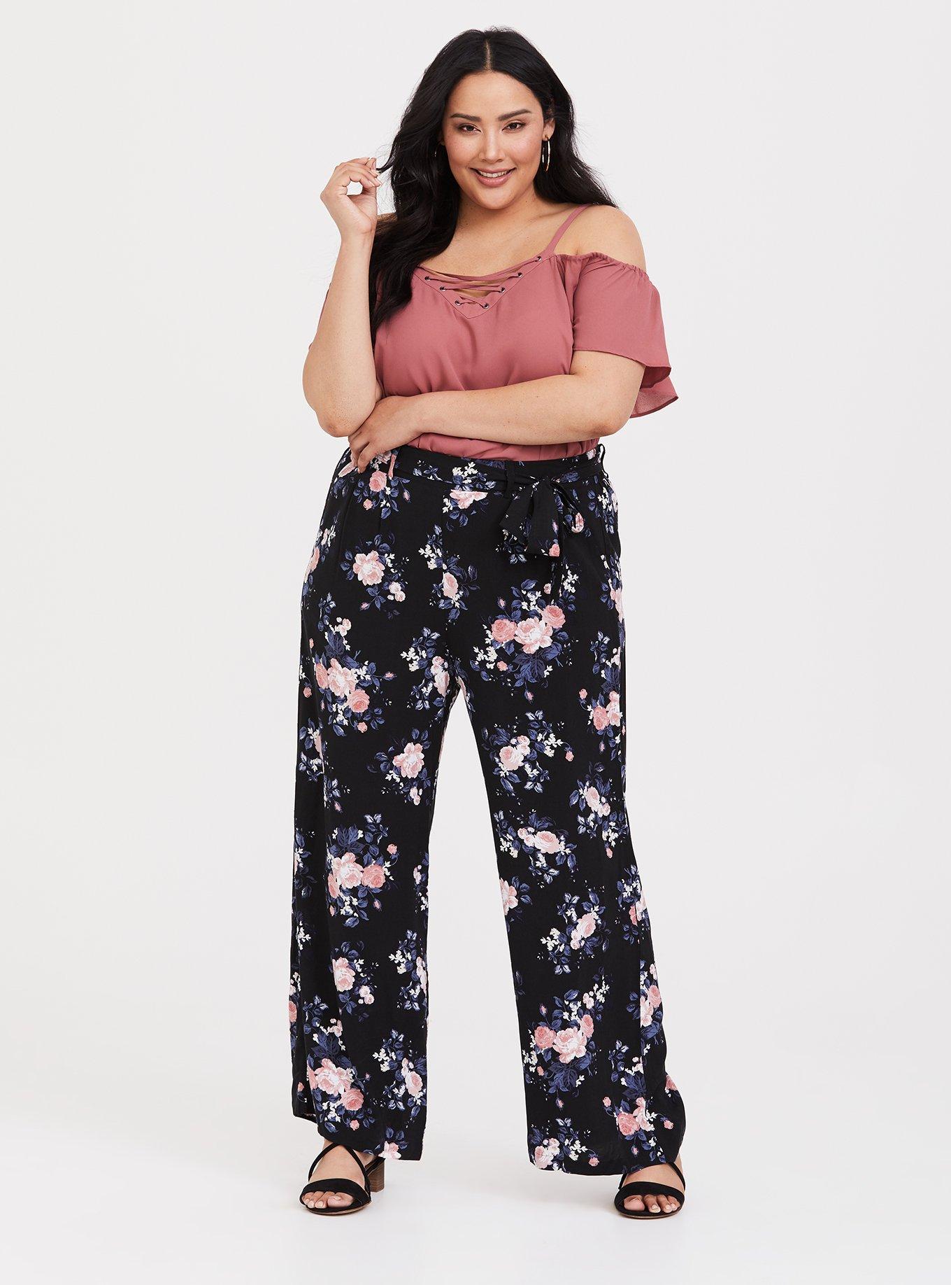 Plus Size Black Floral Challis Wide Leg Pant Torrid