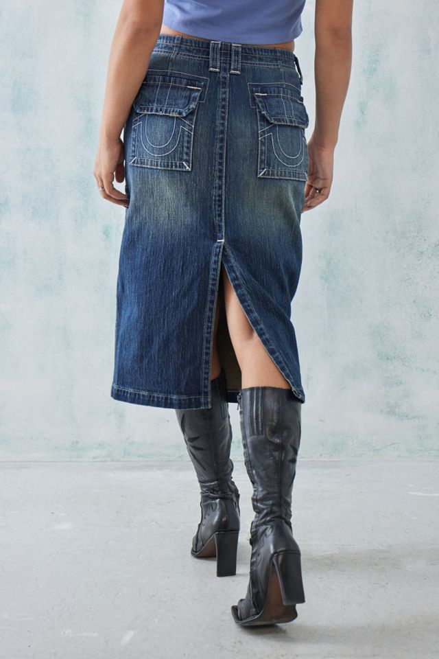 True religion long clearance denim skirt, True Religion Denim Utility Midi Skirt Urban Outfitters UK clearance