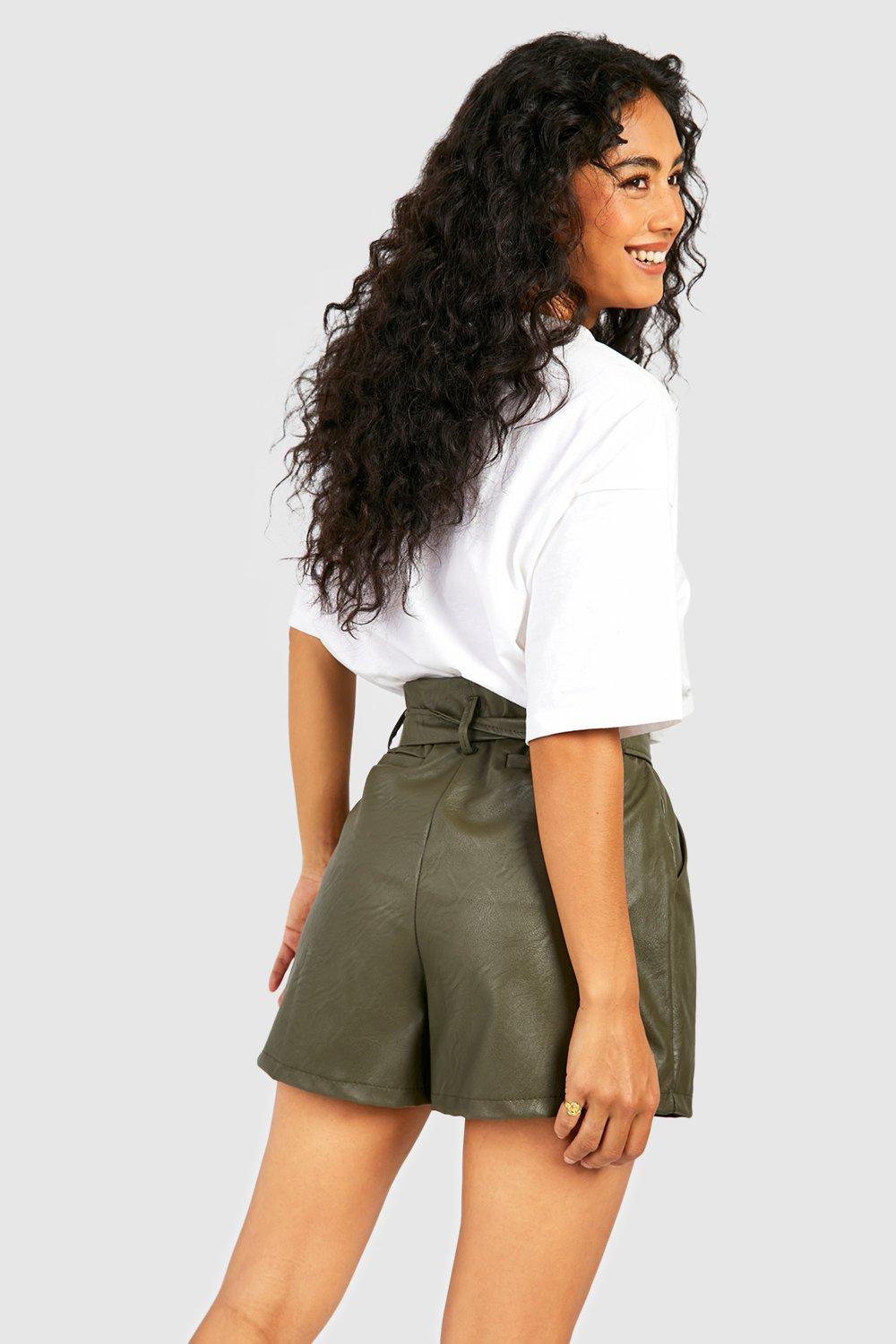 Faux Leather Look Paperbag Waist Shorts boohoo