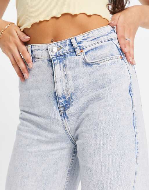 New Look bleach wash wide leg dad jean in light blue