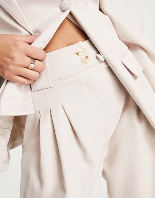 Extro Vert high waist pleat front tailored trousers in ecru co