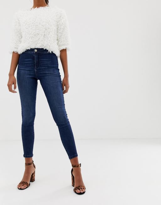 Miss Selfridge Steffi super high waist skinny jeans in dark blue
